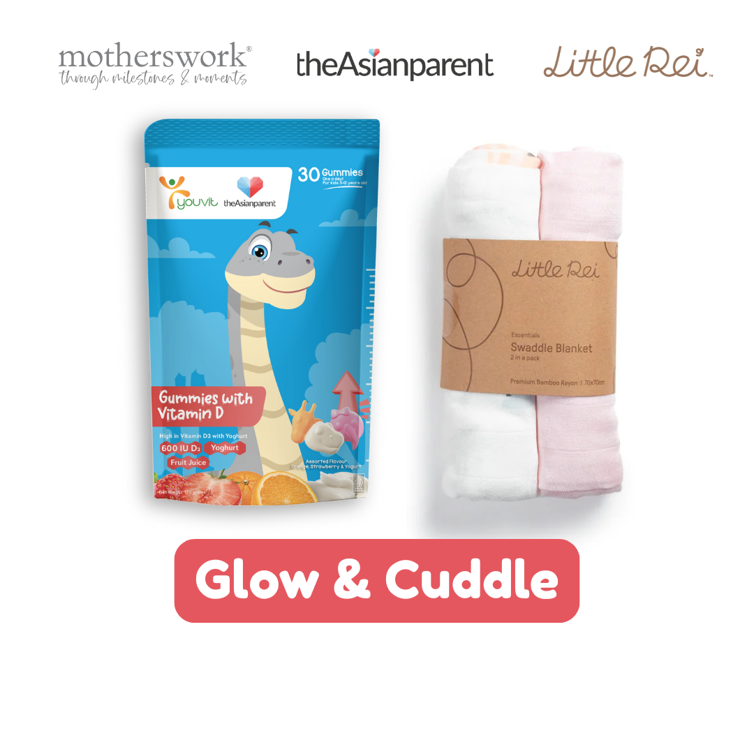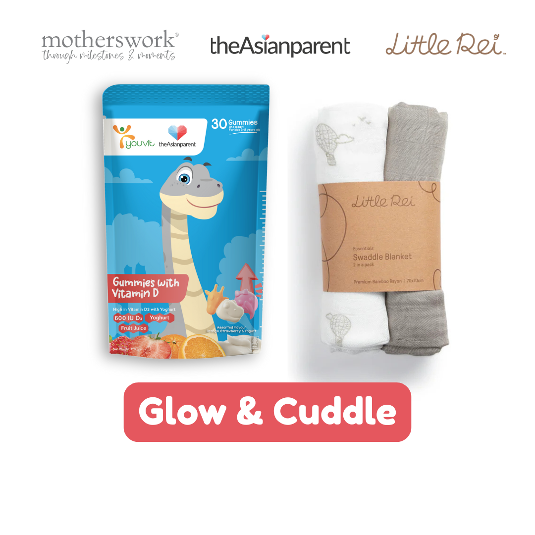 [Glow & Cuddle] Vit D+ Gummy & Little Rei 70sq Bamboo Swaddle Blankets